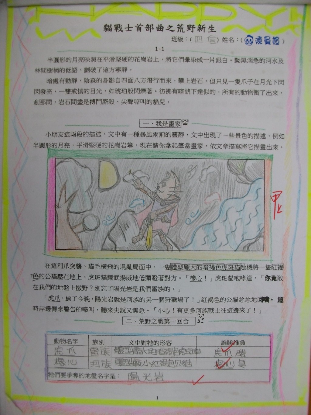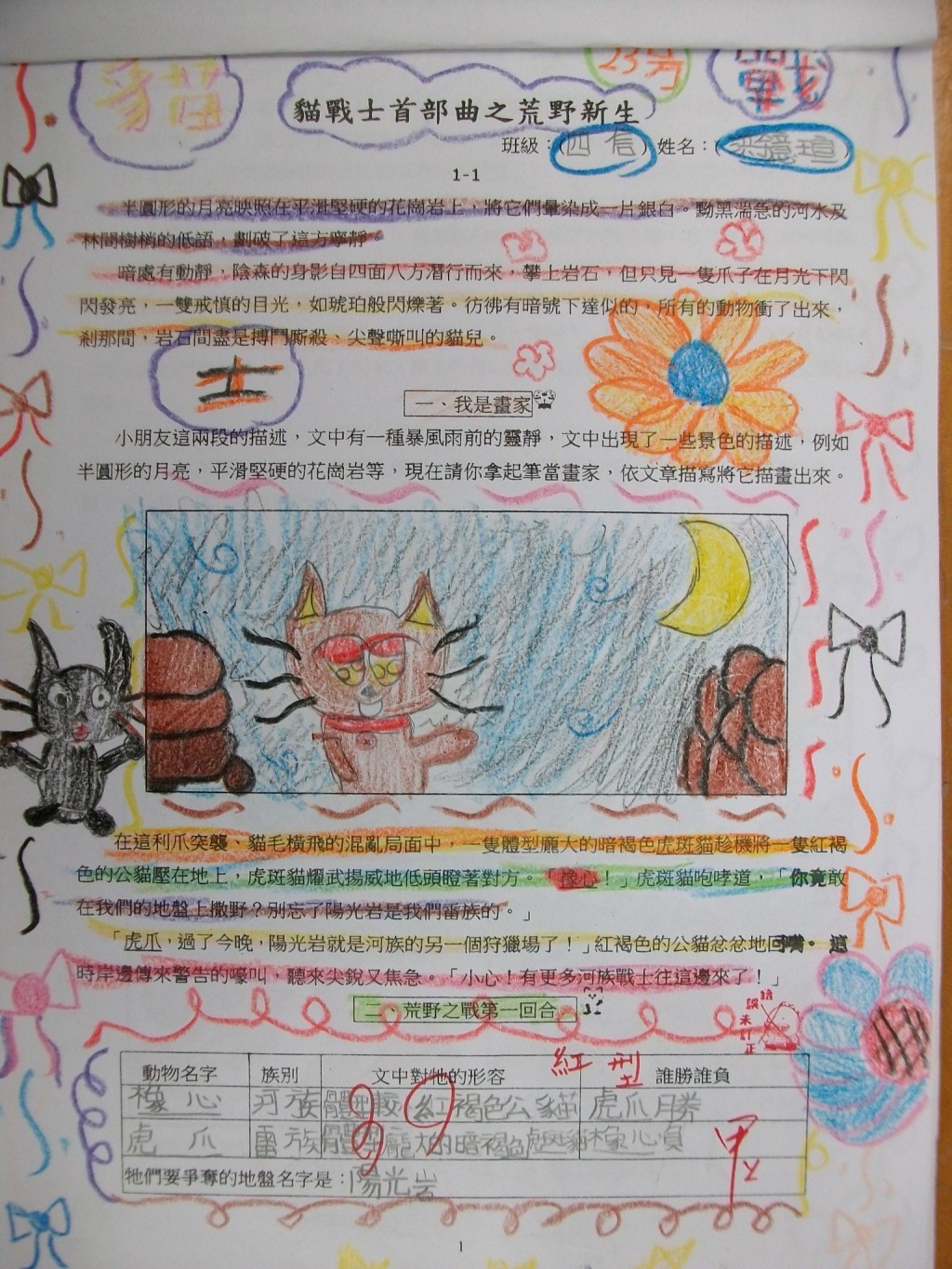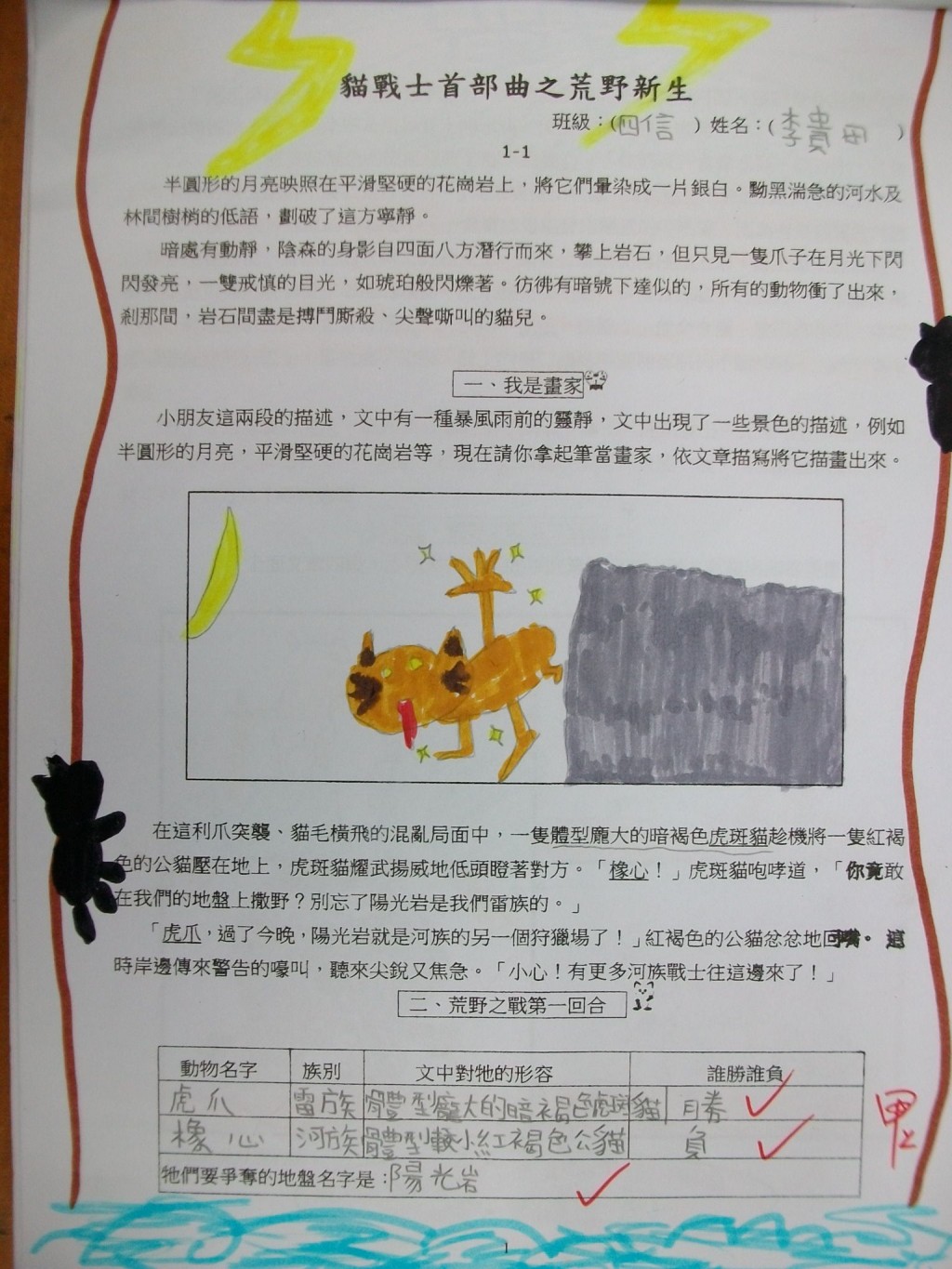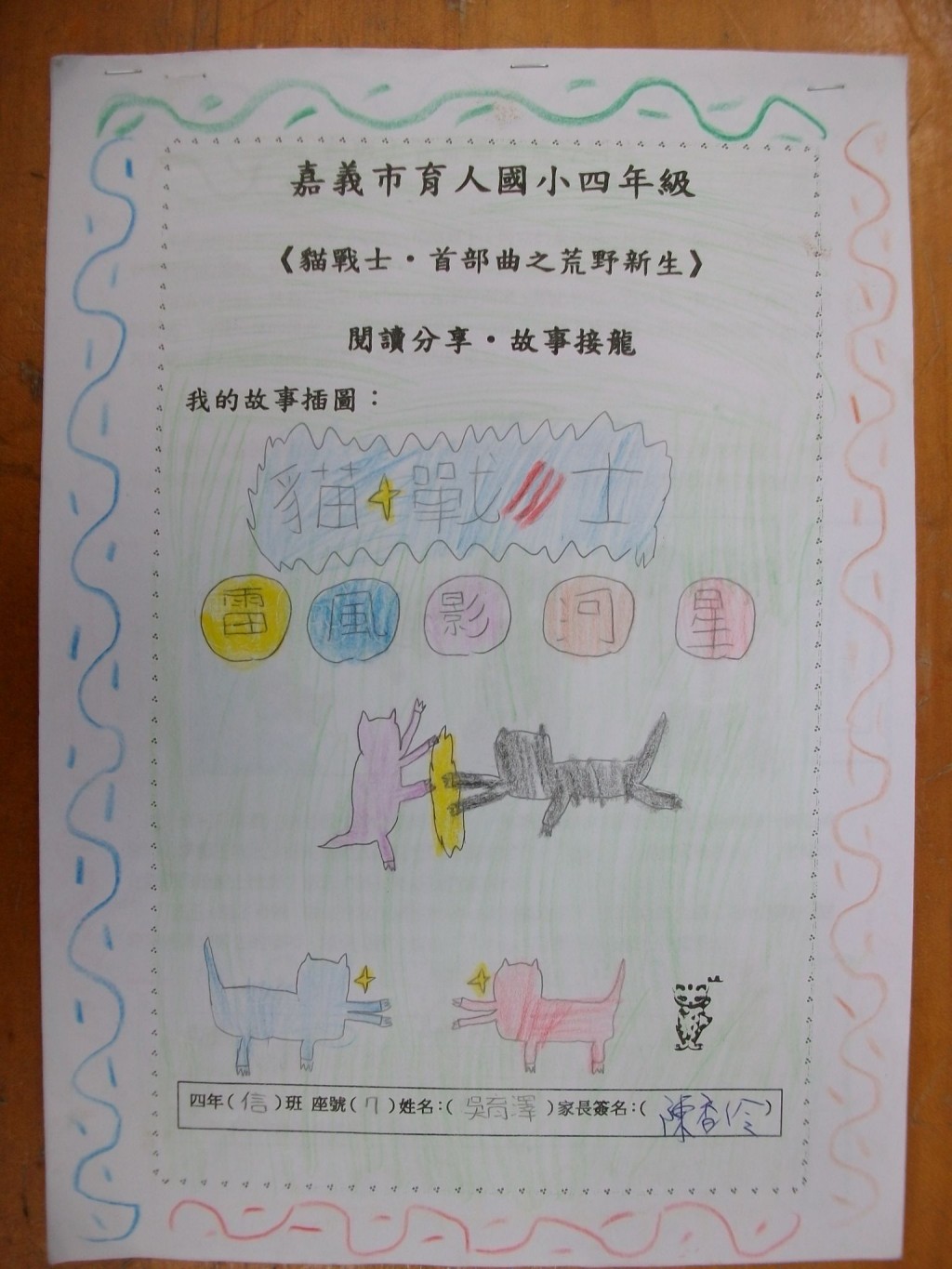 2010/11/06_貓戰士學習單優良作品(四信)