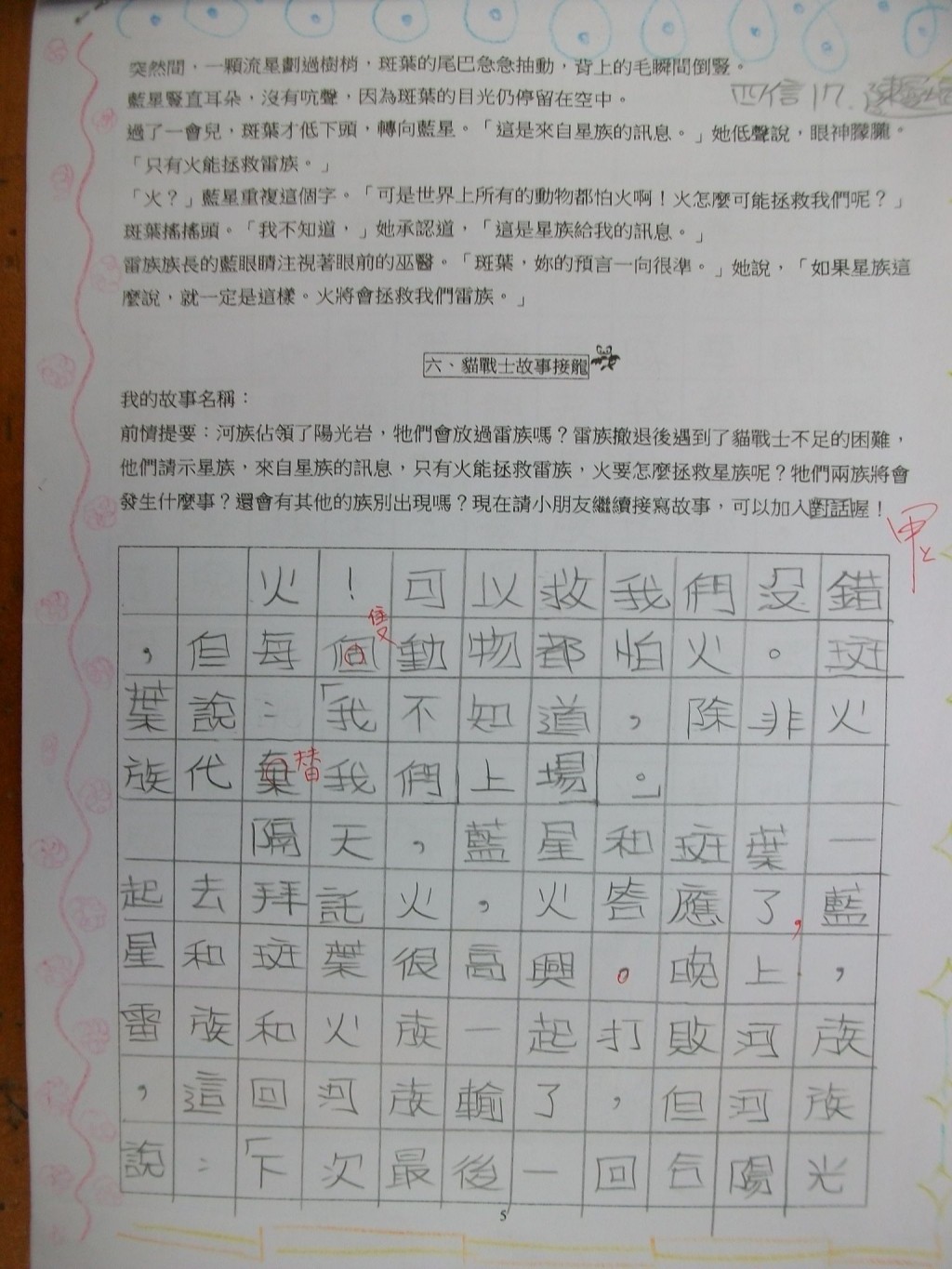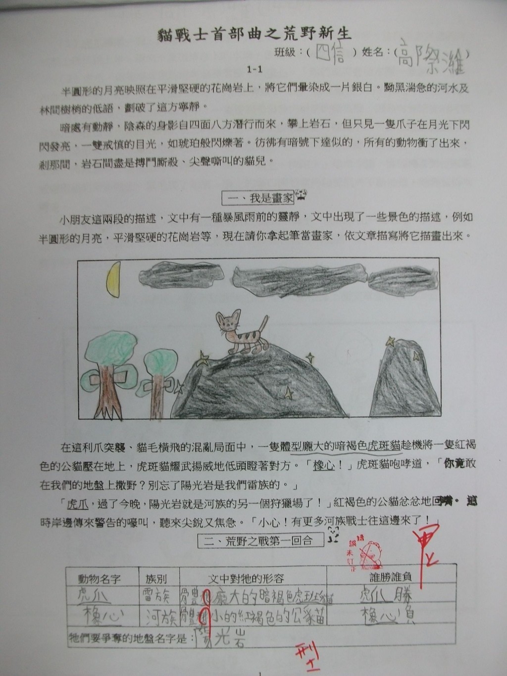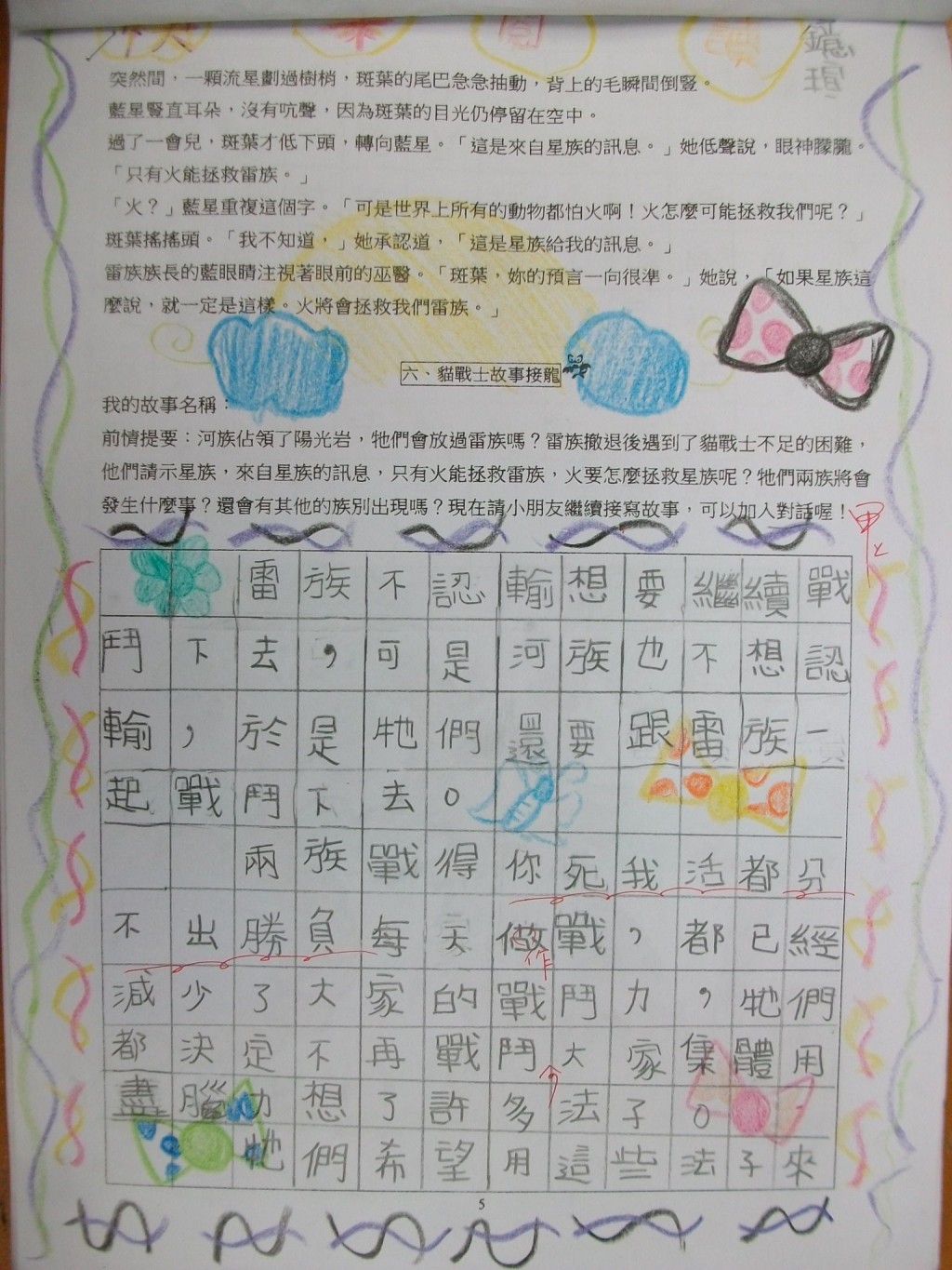 2010/11/06_貓戰士學習單優良作品(四信)