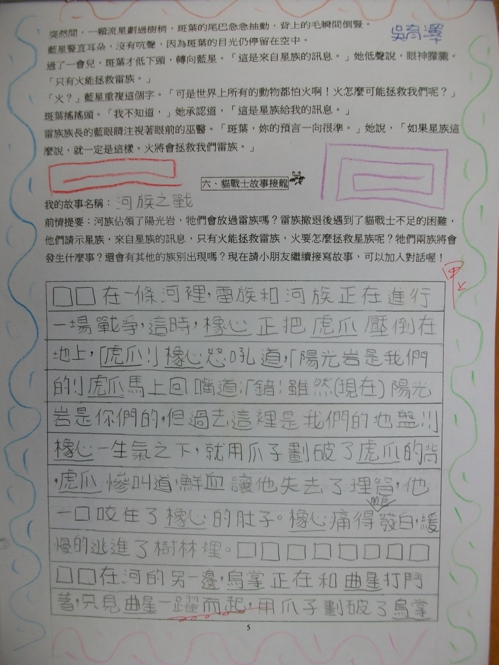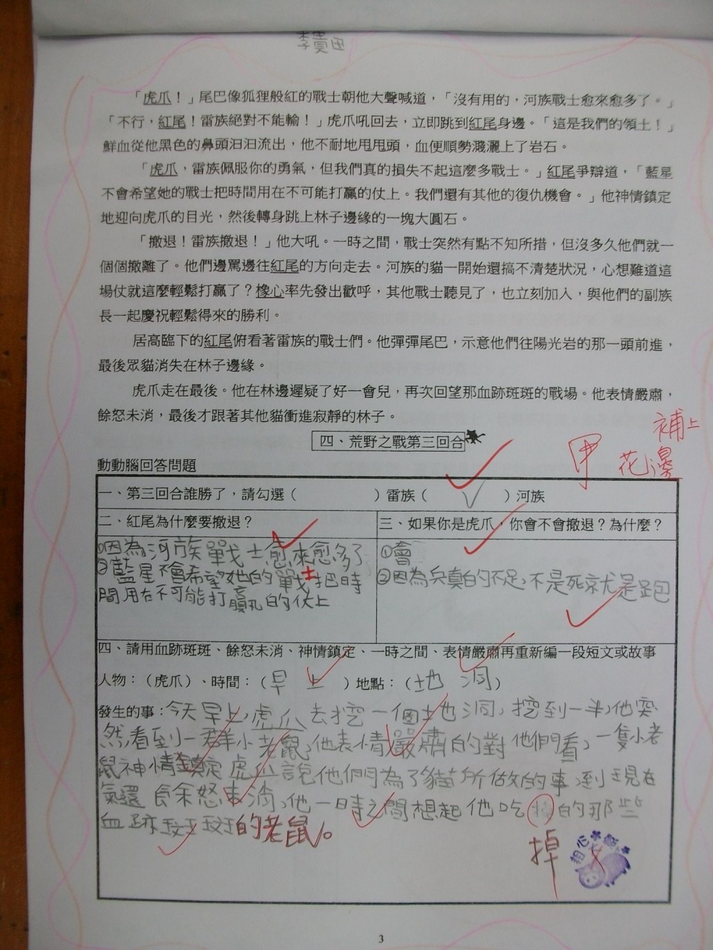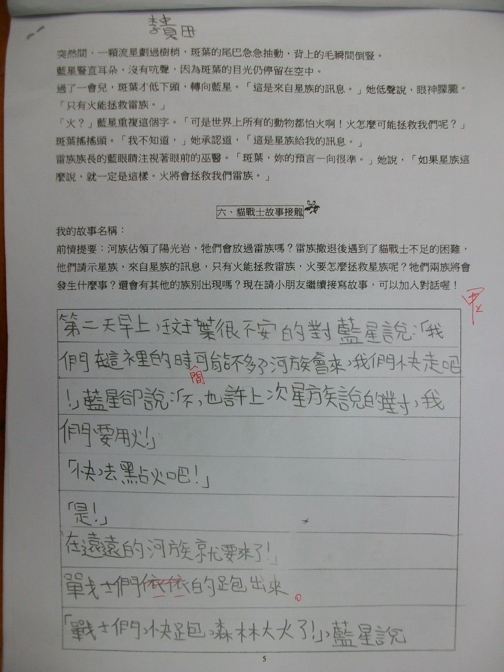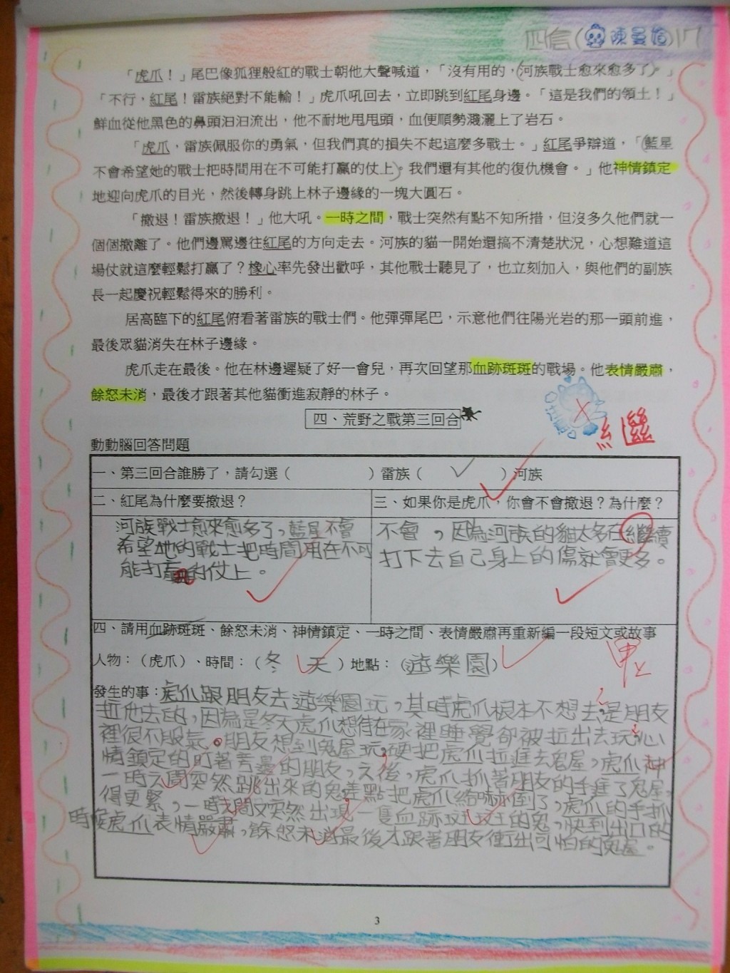 2010/11/06_貓戰士學習單優良作品(四信)