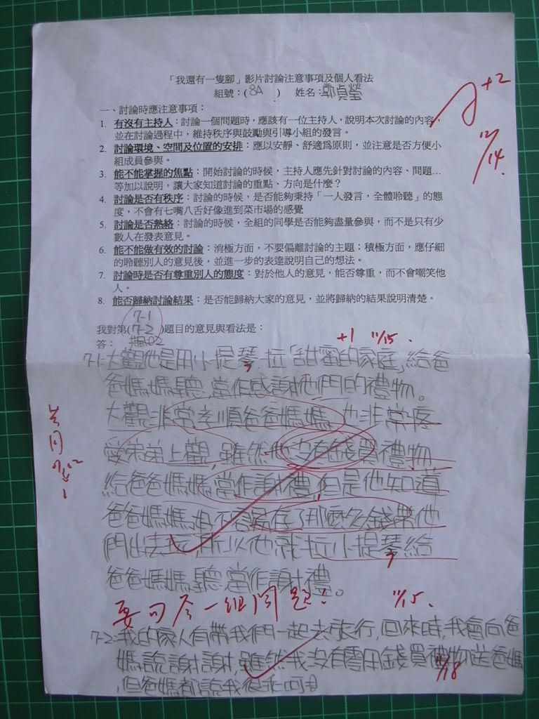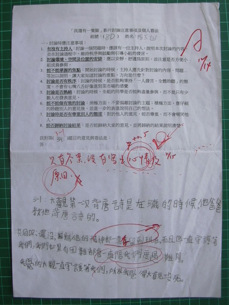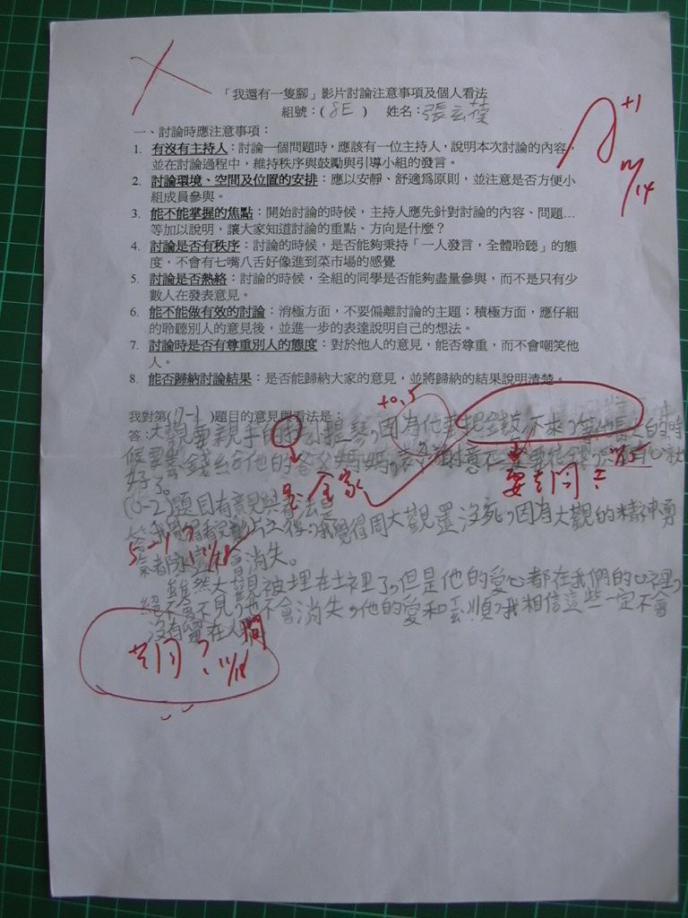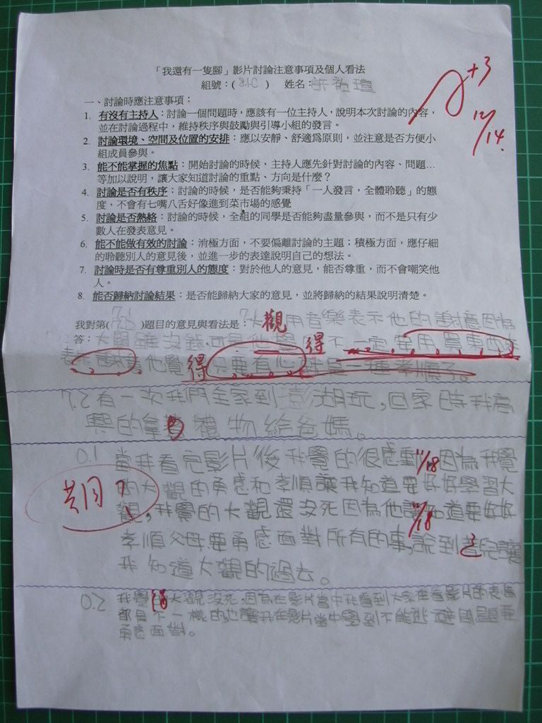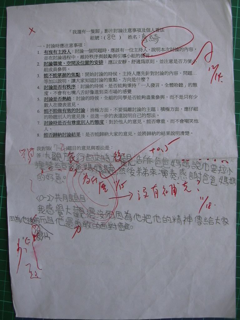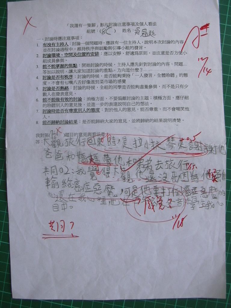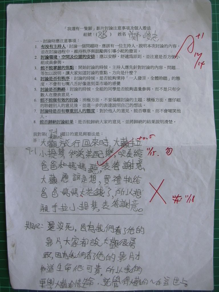 2004/11 共讀課程「我還有一隻腳」討論題綱回答內容