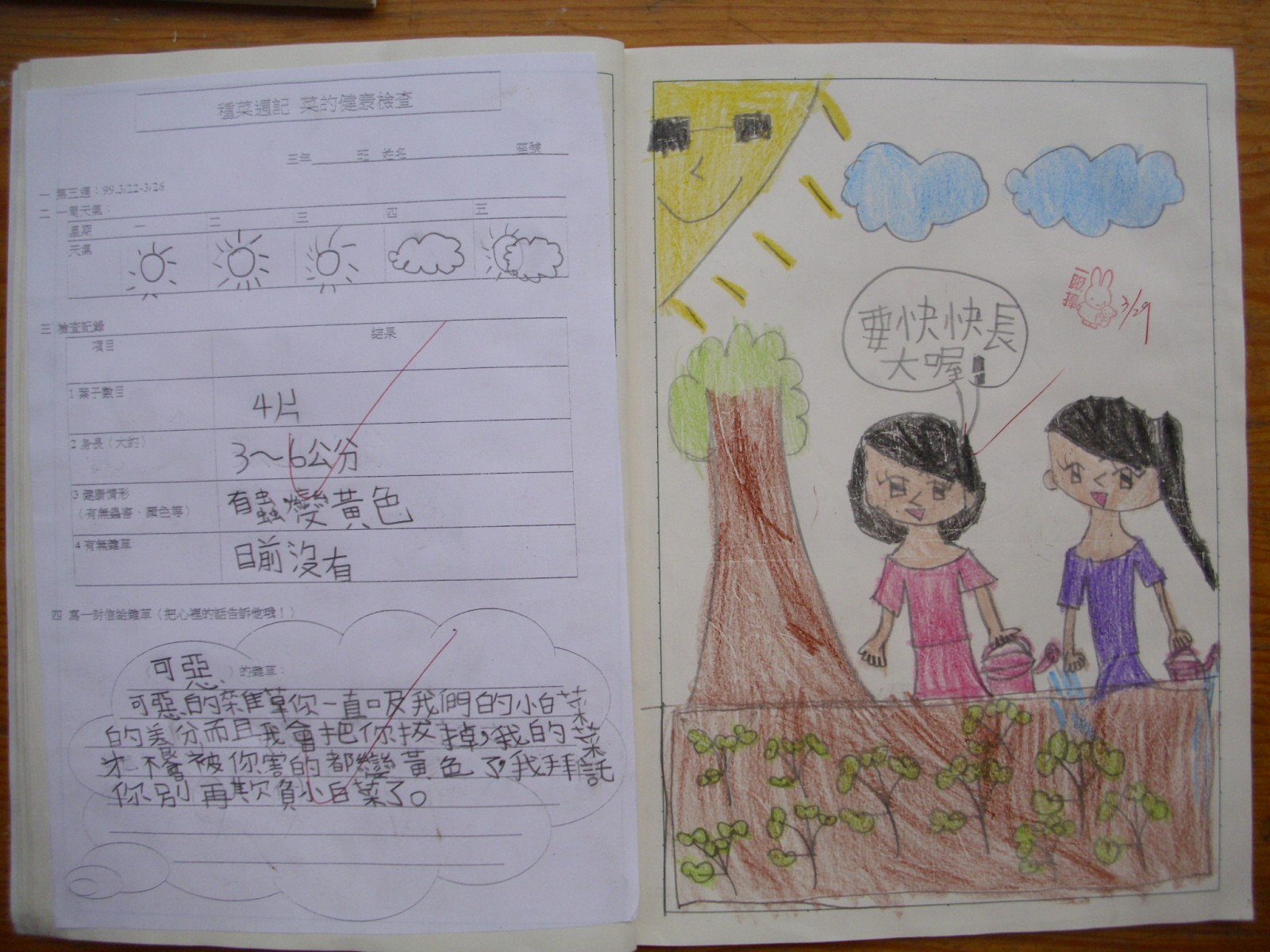 2010/03/22-03/26_育人國小三孝_種菜週記(第05週)優良作品