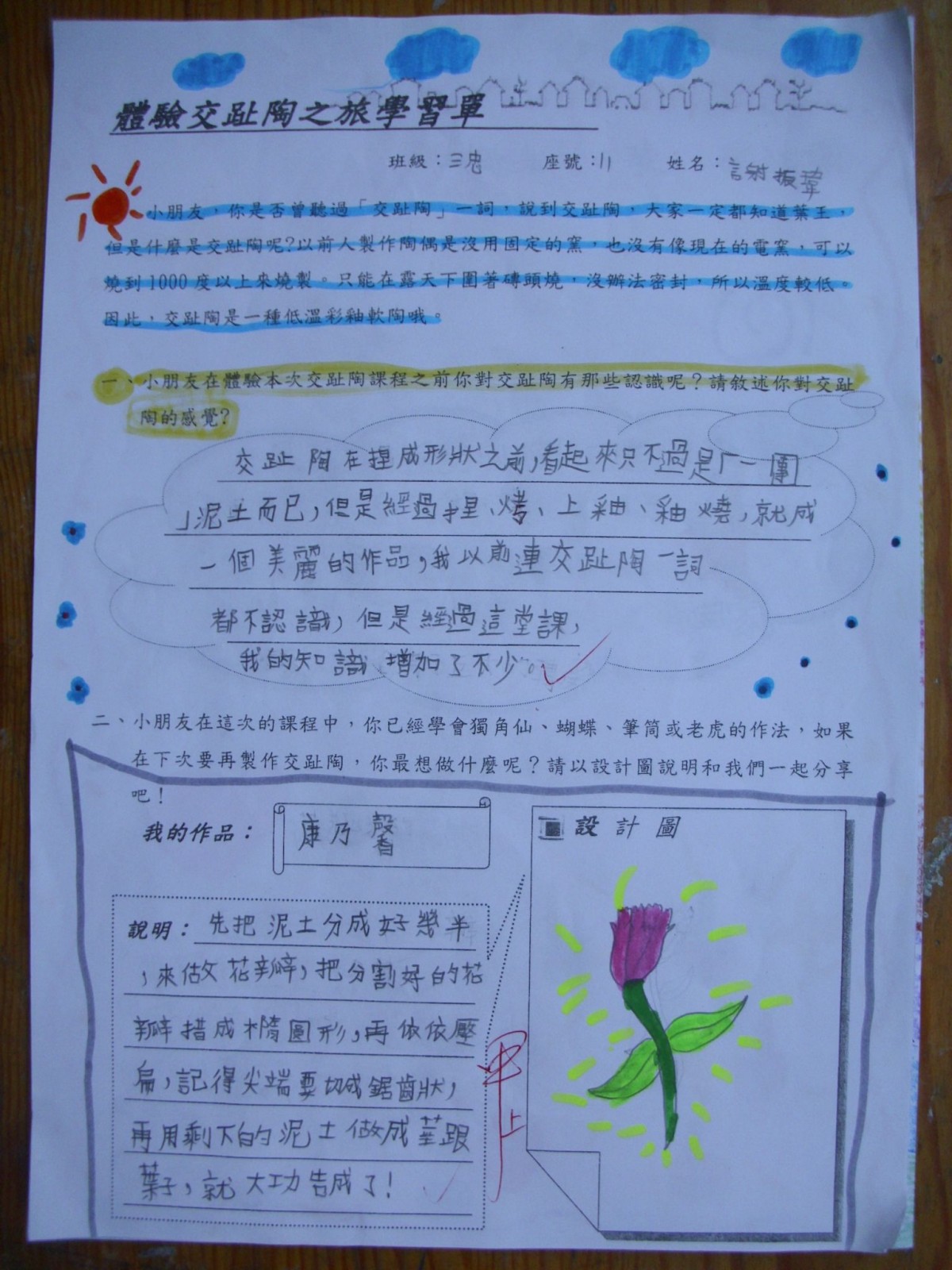 2010/05/_育人國小三年忠班_體驗交趾陶之旅_優良學習單