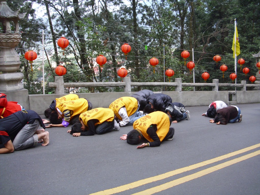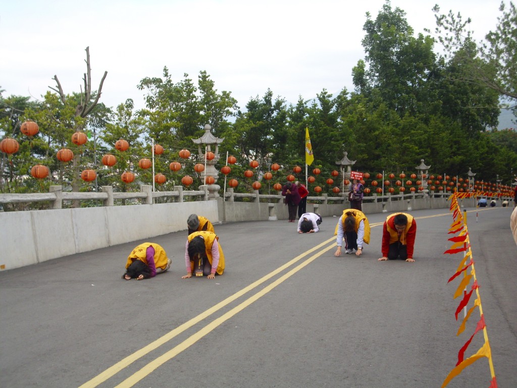 2010/12/04 (佛七晚間朝山分享) 這次朝山安排在晚上 近六點的時候在念佛堂集合 師父先帶領大家念一些經文 然後在六點半左右由師父領大家走下山 在朝山的時候 心裡並無特別喜悅 但我抱著真誠與懺悔之心 祈求菩薩慈悲加被 在朝山的時候 我還想到.... 為什麼老和尚要大家辛苦朝山 為何要三步一跪拜呢? 我想,慈悲的老和尚當然不是故意折磨人 但人卻無法避免的被自己的起心動念以及命運.業力折磨 當日走在我們前頭的是靈巖山寺的師父們 我們則跟著他們做一樣的動作 夜晚 除了微弱的燈光 及妙蓮老和尚師父的念佛聲外 四周黑暗又寂靜 雖然 路是那麼難走 雖然 不知道還要拜多久才到達 但大家還是虔誠向上 儘管人人想法心境不同 但信心卻是一樣 而我的心境如何呢? 對我而言 每一步都是辛苦的 但身體的苦其實是最不辛苦的 這條朝山之路 對我而言 是一條重重考驗之路 每一步我都懷著懺悔與希望 我多麼希望我的每一步是一大步 也多麼希望下一步就到達目的地了 可是....這是妄想 我後來發現真正的朝山之路 不是我們希求跨出去的步伐有多大 也不是期待下一步是否就能到達目的地 真正的朝山之路 是要虔誠而智慧的踏出每一步伐 只要走對了路 不怕朝山之路有多遙遠 也不怕朝山路有多艱苦 必然會見到光明的 怕的是 我不願意走 或者走了一小段 卻因為辛苦而不走了 又或者是因為信心不夠而放棄了 那成功就遙遙無期了 這條朝山之路 對我而言 不是一條孤獨之路 因為我有佛法僧三寶慈悲護持 朝山之路是辛苦的 但不要害怕 也不要太多的煩惱 若它們來時 隨它去吧 我們要做的 就是真行切願的一步一腳印的走 並且耐心勇敢且心存希望 等待因緣具足圓滿之時 屆時光明燈自然在山頭 與我的心燈彼此輝映 並且發出 無比燦爛與喜悅的生命之光 |